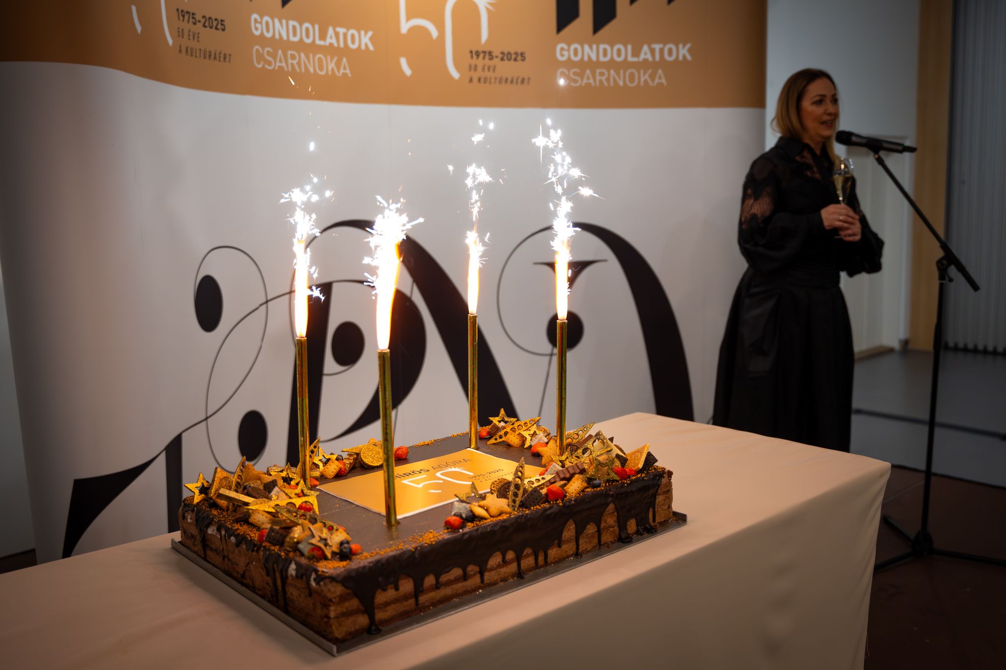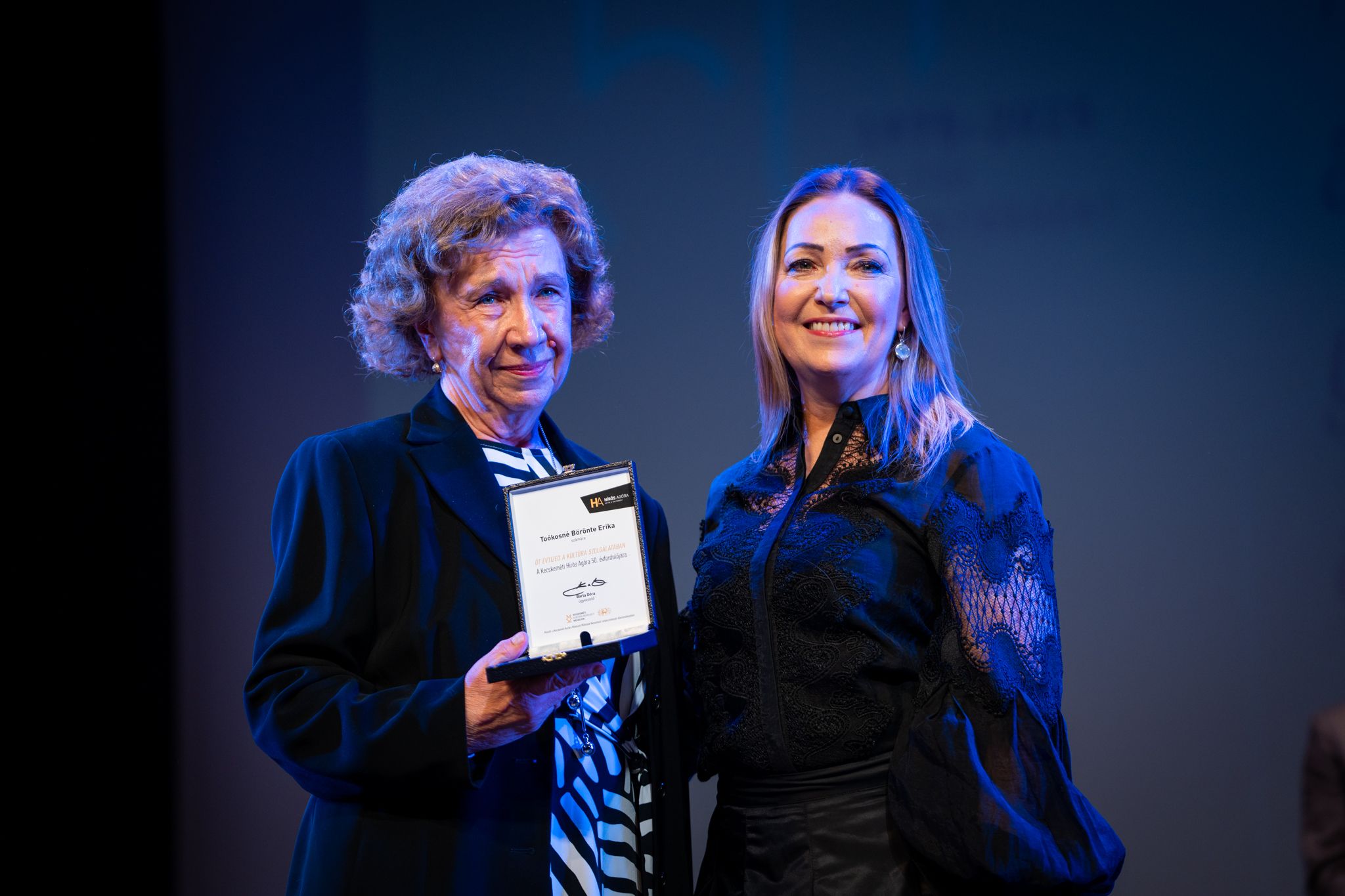 Barta Dóra érdemes művész, a Kecskeméti Hírös Agóra ügyvezetője köszöntő beszédében hangsúlyozta, ezen a különleges gálán együtt ünnepelhettünk egy közös történetet, a tehetséget, a tudást, az elkötelezettséget, a kulturális értékeket, amelyek Kecskemétet különlegessé teszik. A gálán emlékezünk az elmúlt ötven évre és ünnepeljük a Hírös Agóra és jogelődjei körül kibontakozó gazdag művelődéstörténeti örökségünket. A valódi érték a közösen teremtett erőben rejlik, amikor a közösség tagjai nyitottan és egymást támogatva, inspirálva kapcsolódnak össze, olyan szellemi és művészeti energiákat létrehozva, amelyek messze túlmutatnak az egyéni teljesítményeken. Továbbá kiemelte, hogy a Hírös Agóra falai között az elmúlt ötven évben olyan személyiségek nevelkedtek, akik országos, illetve nemzetközi szinten is híressé váltak.